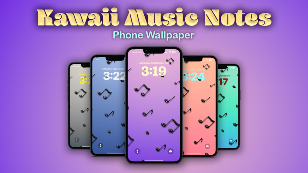 Kawaii Music Notes Phone Wallpaper